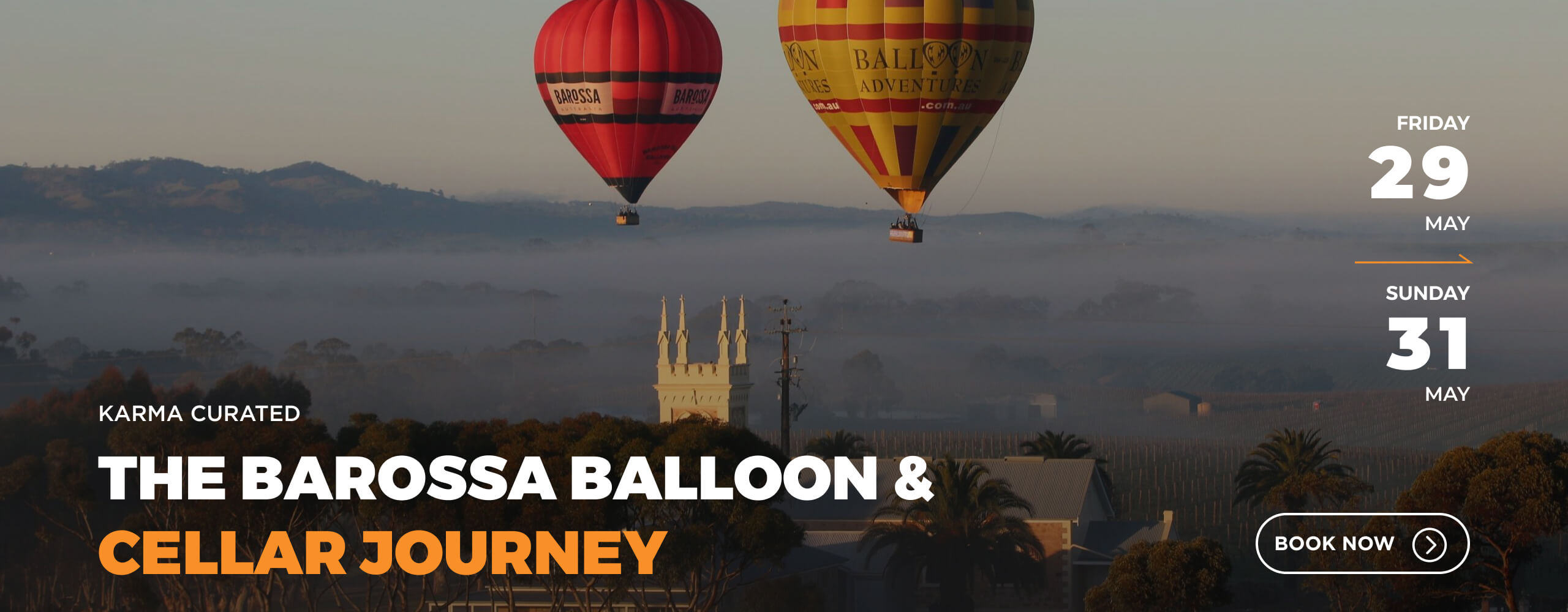 By 29–31 May, we’re in the Barossa Valley. Sunrise ballooning over vineyards, mist lifting, then cellar doors, long lunches and communal dinners – equal parts altitude, appetite and connection.