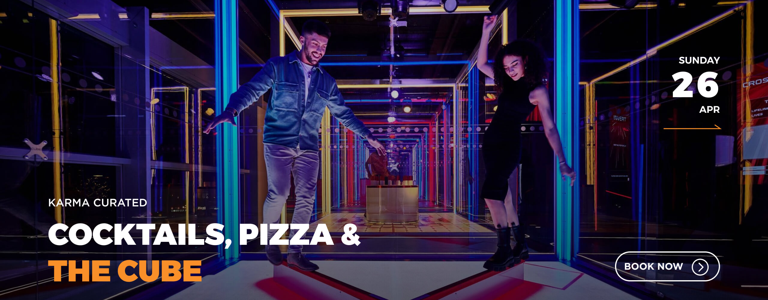 London, 26 April, turns up the pace. Cocktails, pizza, then straight into THE CUBE at Canary Wharf – teams of four, glass walls, rising nerves. Fast, funny, competitive chaos.