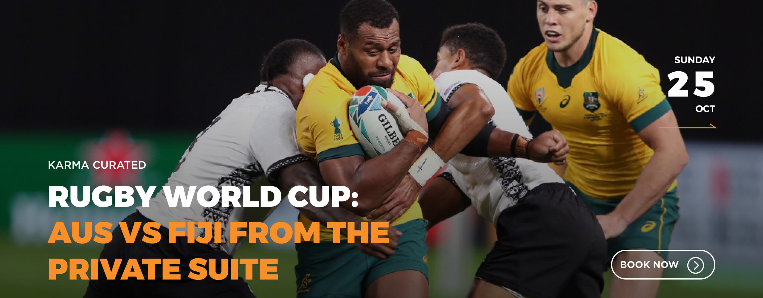 By October, we’re in Brisbane, Australia’s subtropical river city, inside Suncorp Stadium – the country’s most atmospheric rugby ground. Australia vs Fiji as the Rugby League World Cup unfolds below from a private suite: premium food, free-flow drinks, and a global game played at full volume.