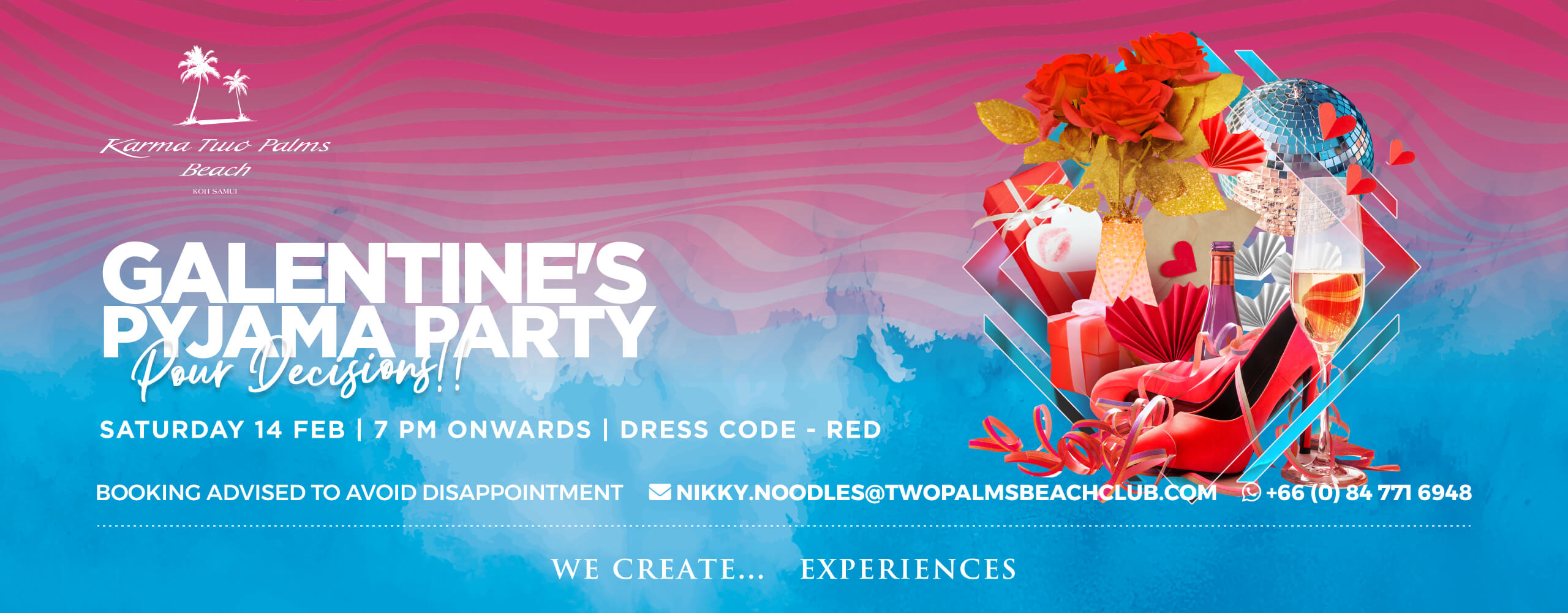 In Siem Reap, Karma Bayon sets the tone poolside with a Valentine’s set-menu dinner under the stars, accompanied by live music and the soft glow of water and lantern light. In Thailand at Karma Two Palms Beach, the vibe shifts to something lighter: a beachside Galentine’s pyjama party, open to members with no entry fee and plenty of feel-good fun.
