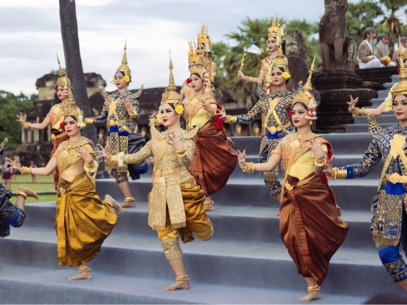 Then there’s countryside cycling at golden hour. Here, red dirt roads, sugar palms, stilted houses and ambling water buffalo invite you to watch Cambodia in the most unfiltered way. Finish the day with Apsara dance, only reimagined: find intimate performances where stories are explained and not rushed between buffet courses.