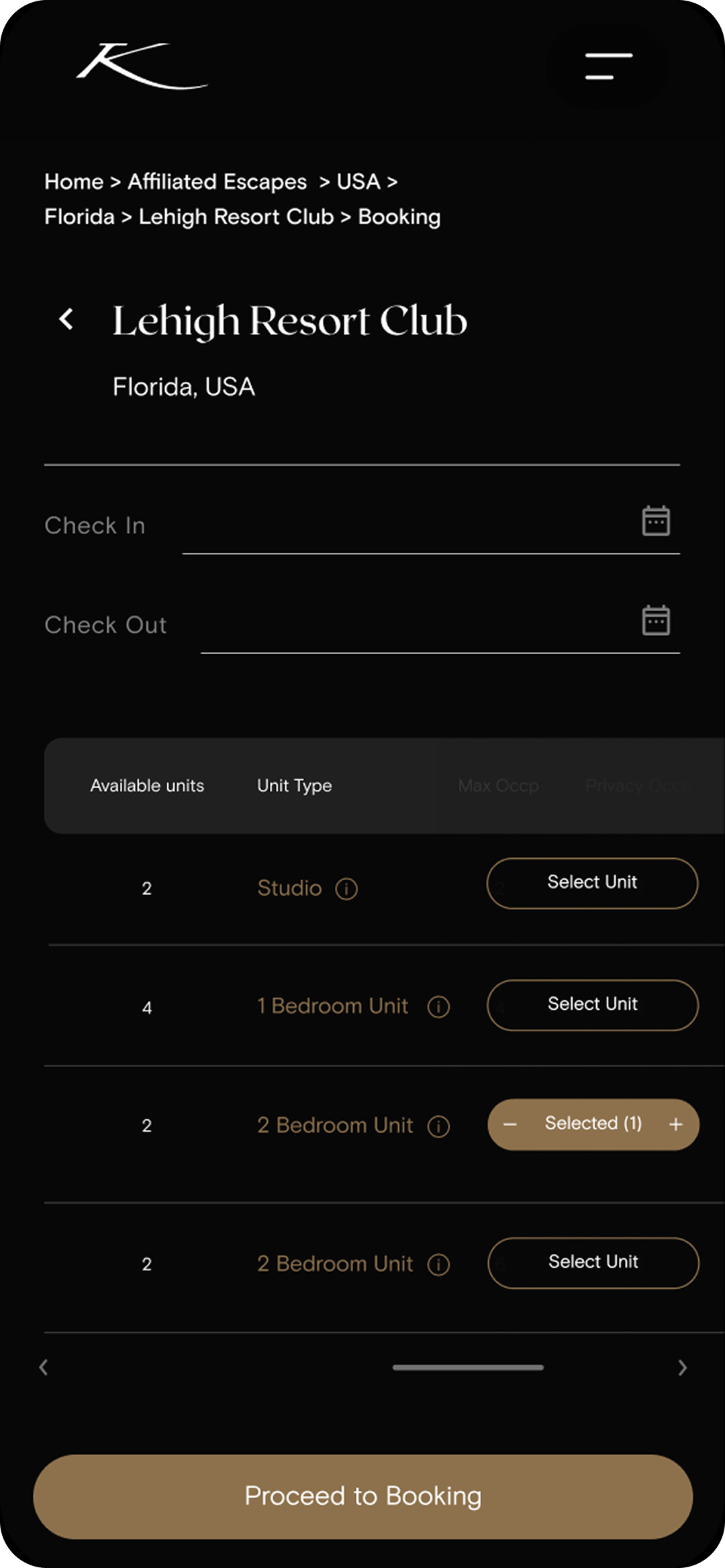 - If you’re travelling with family or friends, you can also select multiple units
