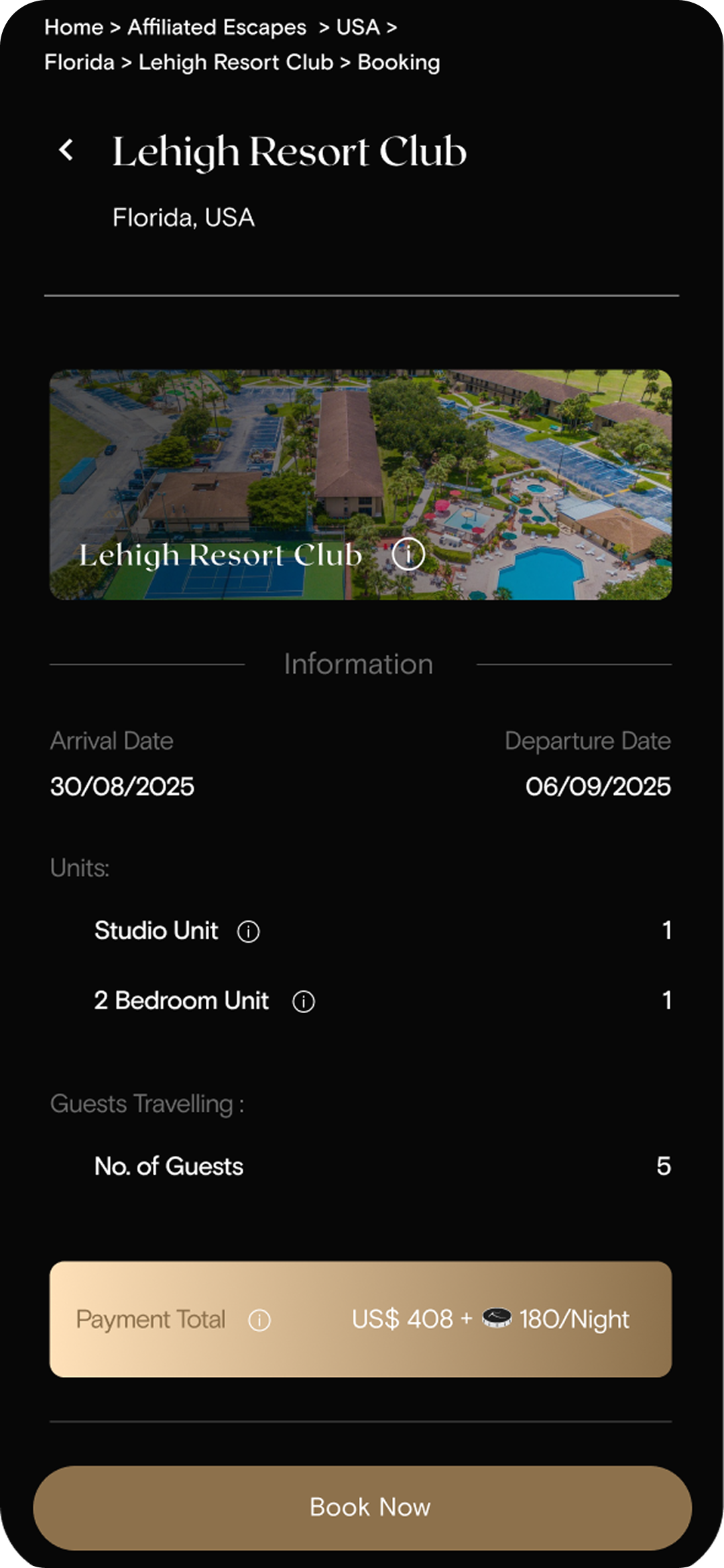 - Each resort has a detailed profile page.